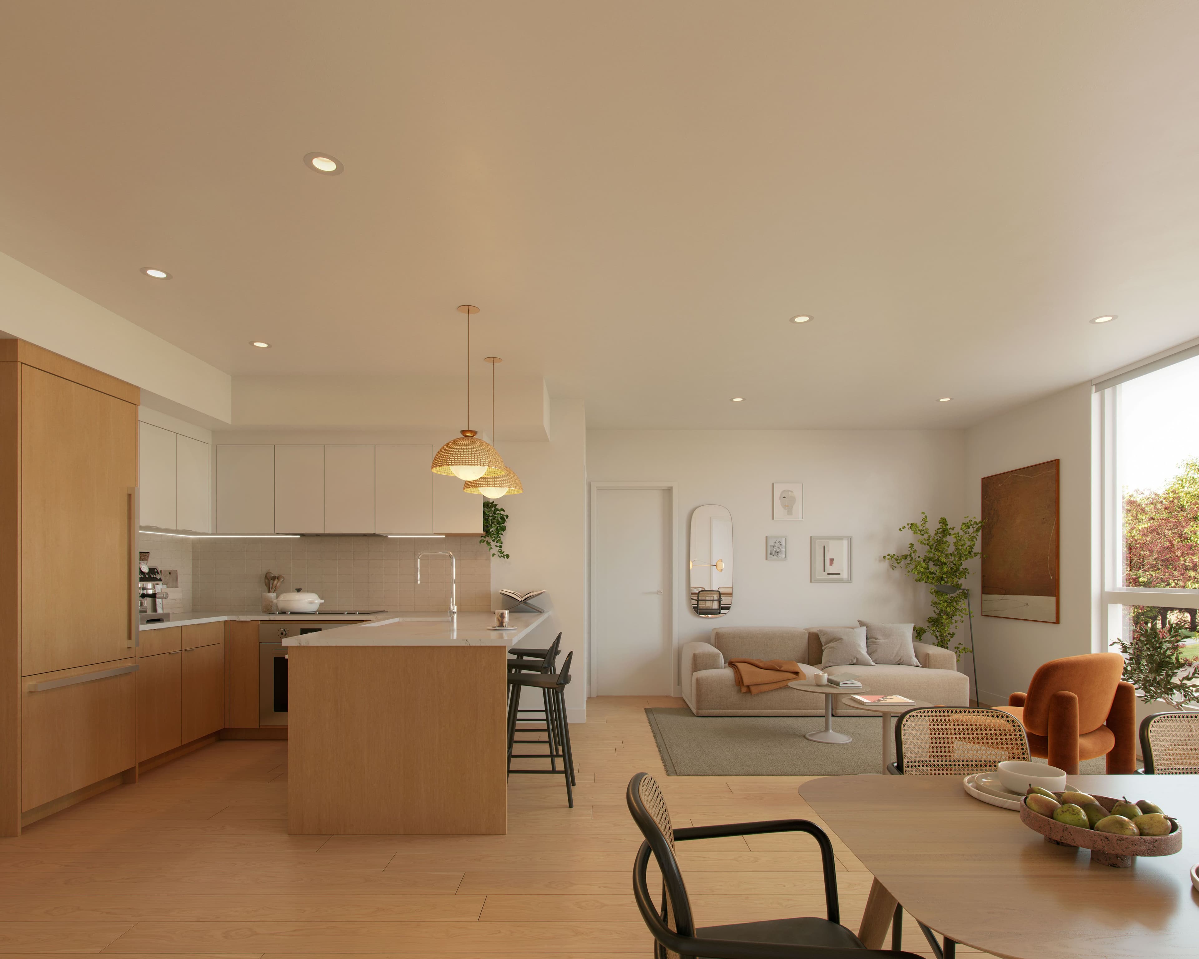 Natural oak wood flooring and custom millwork exemplify the attention to craft throughout the homes, while oversized windows and functional floorplans articulate a sense of ease, offering a retreat for all seasons of life. Drawing inspiration from the local land and sea and aligned with the highest standards in interior design—the Summerhouse team handpicked a selection of timeless, superior-quality materials to elevate your home. Crafted to embrace daily life, these elements come together in a seamless blend of colour, texture and form, to provide a deep sense of comfort and home.