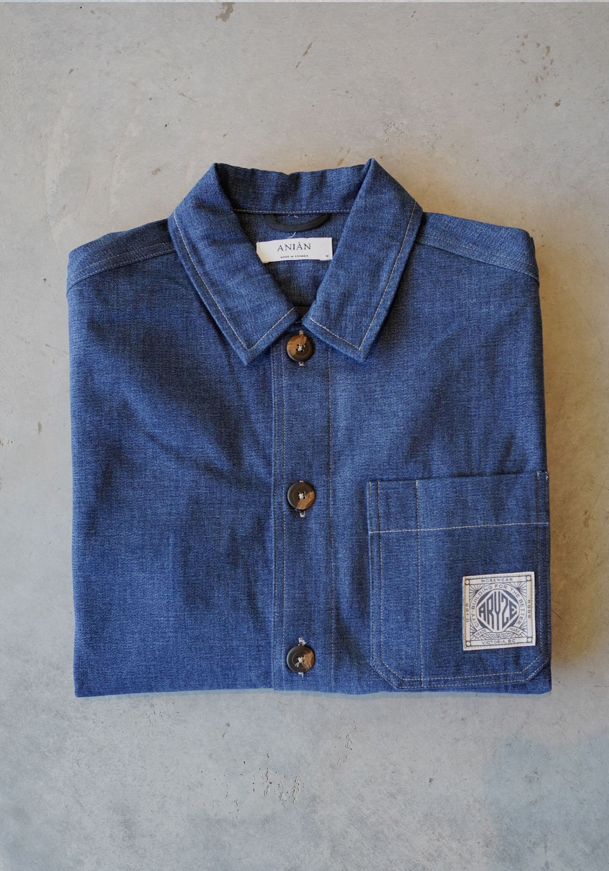 We partnered with our friends at Anian to design this custom denim workwear–inspired chore coat, featuring double-reinforced elbows, a carpenter’s pencil slot, a cut built for movement and our custom branded patch designed by Rio Kaneki.